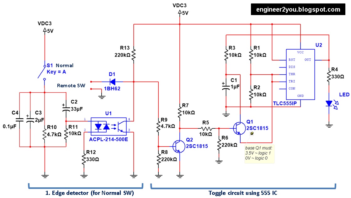 IC-555 is center of circuit for toggle switch.